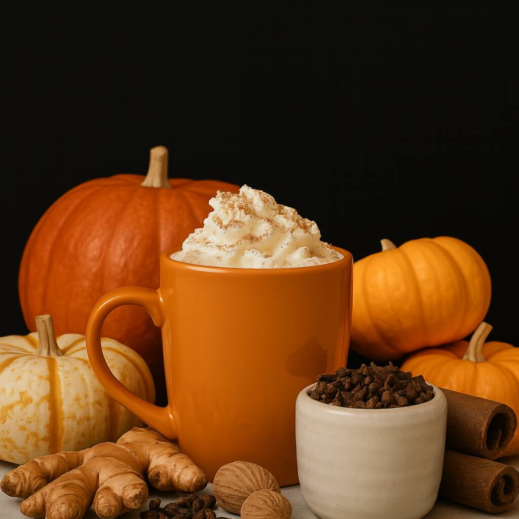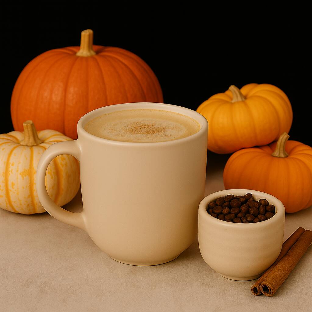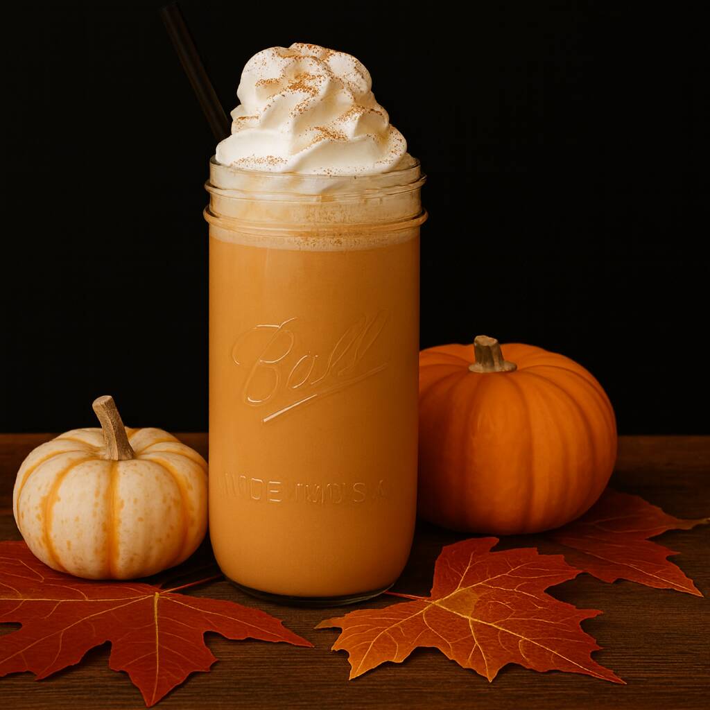 16 oz de café con leche espumada que contiene una mezcla de sabores tradicionales de especias otoñales