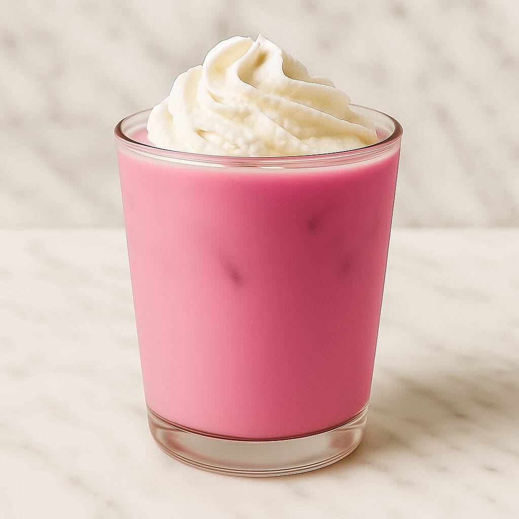 16 oz de frappé elaborado con leche, jarabe y hielo adornado con crema batida