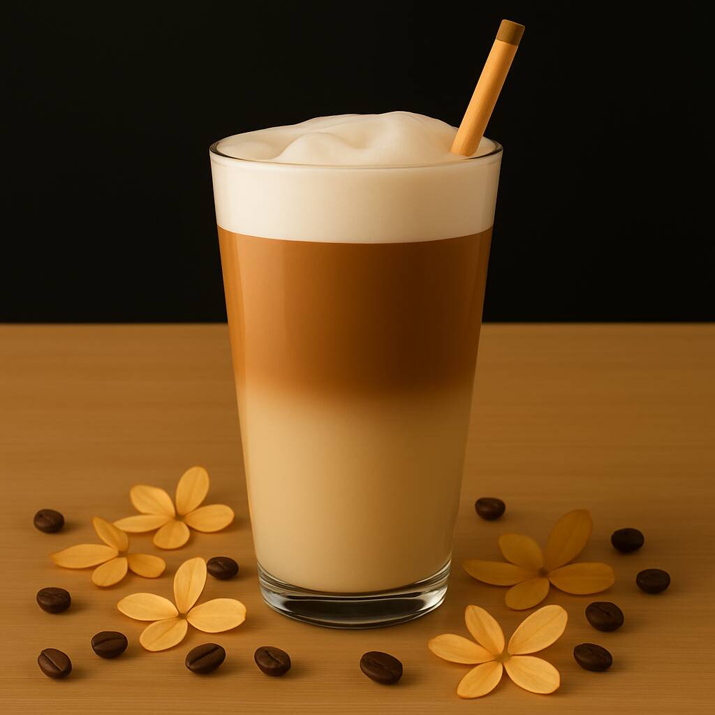 12 oz de café con leche espumada complementado por la dulzura y el aroma de la vainilla francesa
