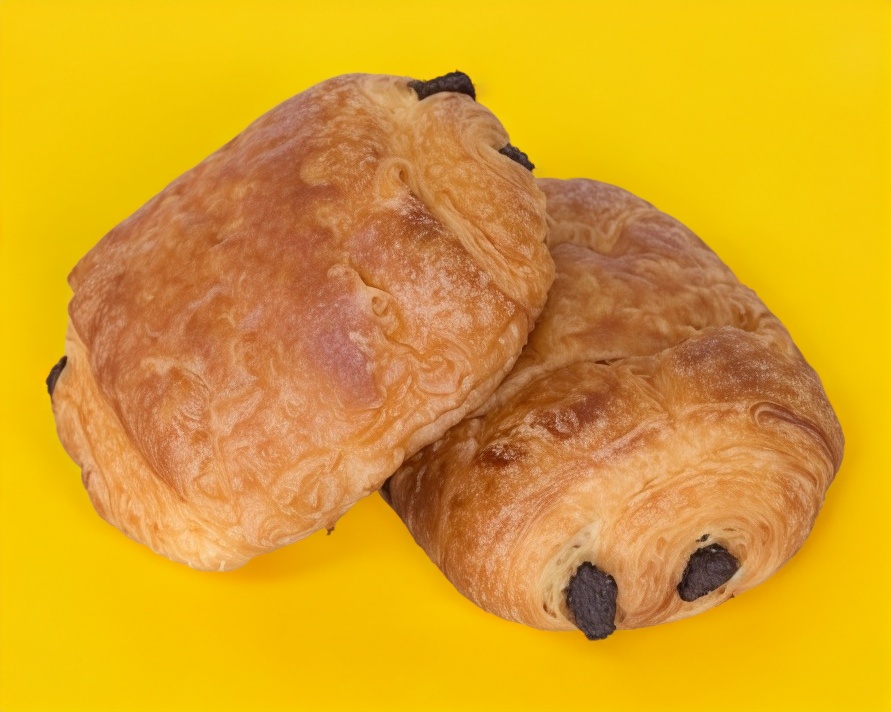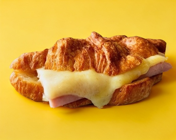 Croissant relleno de jamón de pavo y queso gouda, horneado.
