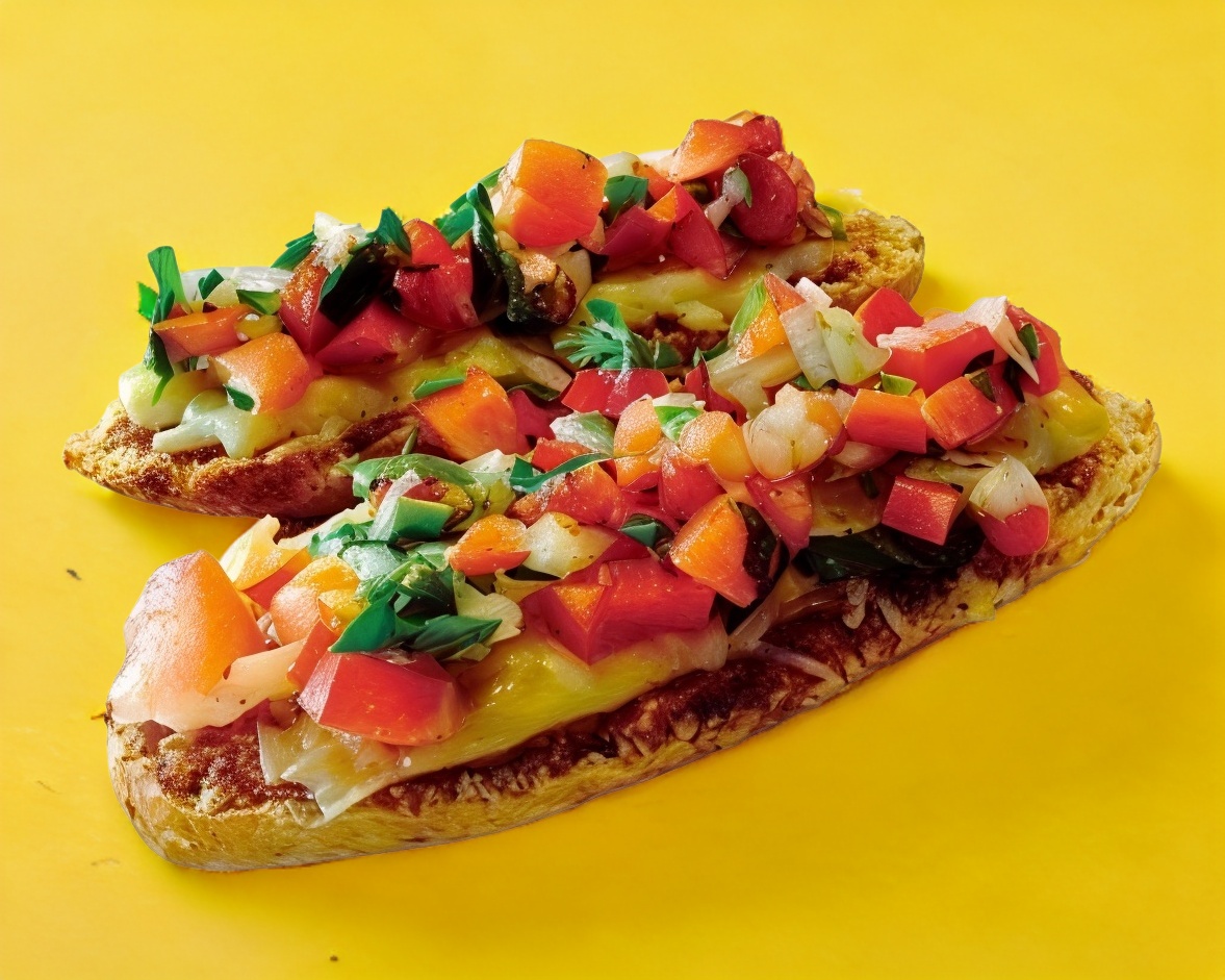 Pan frances cubierto de frijoles y queso chihuahua, acompañado de nuestro pico de gallo en salsa casera