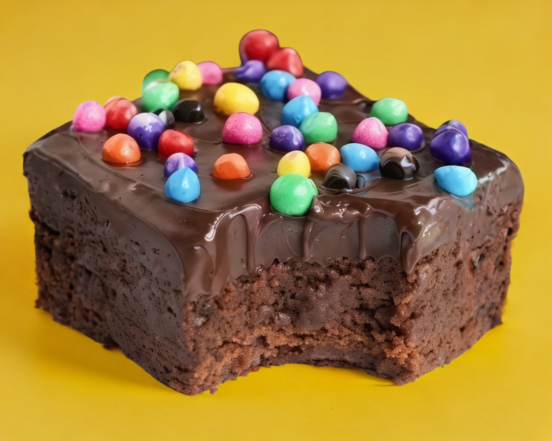 Delicoso postre casero elaborada con una base de brownie de chocolate