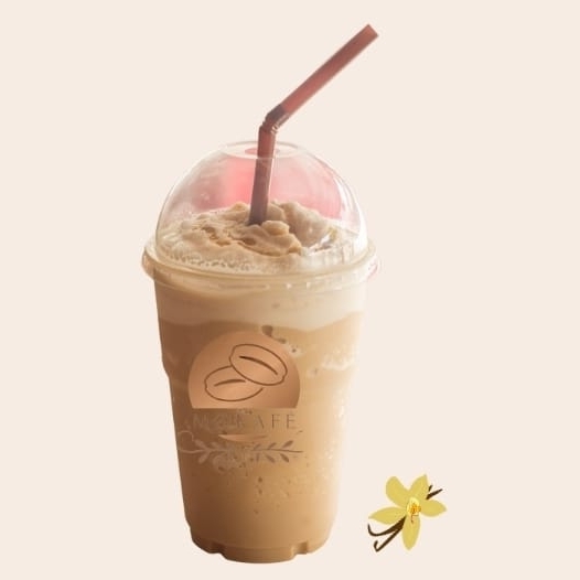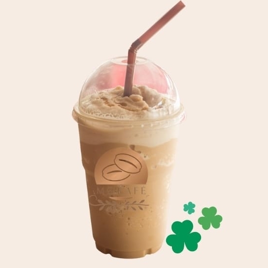 Café frio con leche servido sobre hielos y cubierto con una espuma de leche.