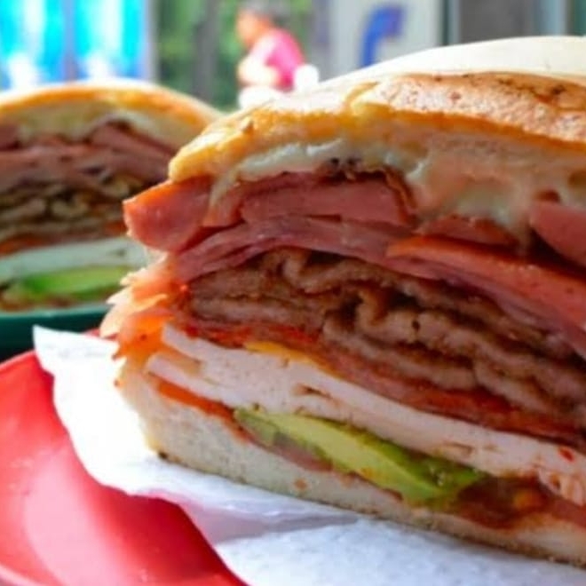 Jamón, quesillo,y queso amarillo (frijoles, mayonesa, cebolla, tomate y aguacate)
