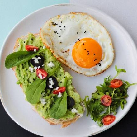 Pan brioche, aderezo de queso de cabra y queso crema, espinaca, salmón ahumado, alcaparras, aceituna negra, tomate cherry y mini ensalada de arugula con vinagreta de frutos rojos.