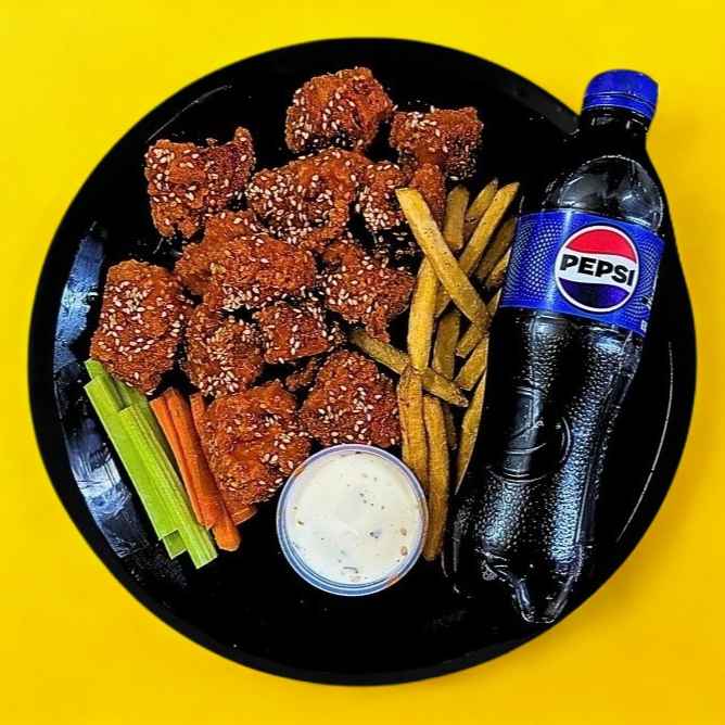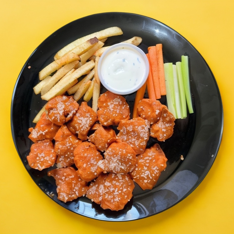 13 Piezas de boneless, báñalos con tu salsa favorita, aderezo ranch.