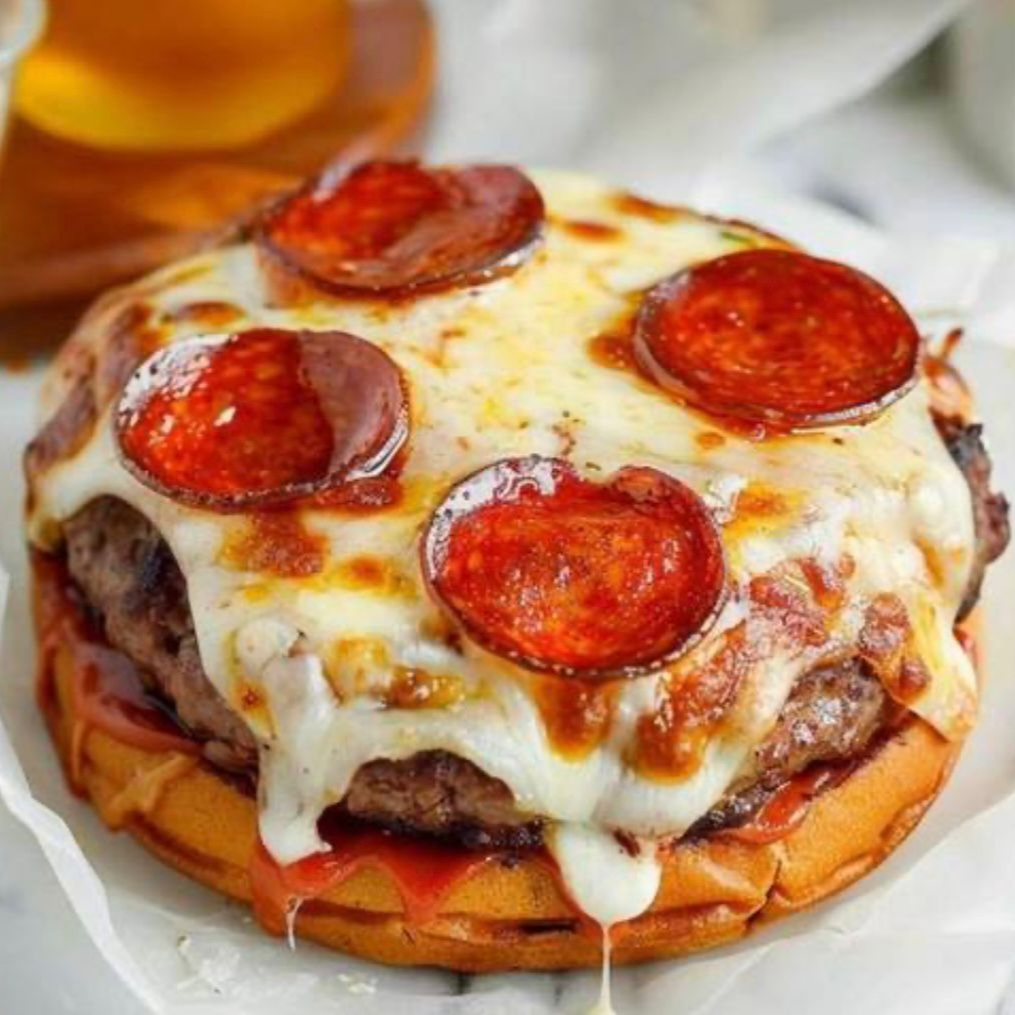 BURGER CON SALSA DE TOAMTE,DOBLE QUESO Y PEPPERONI