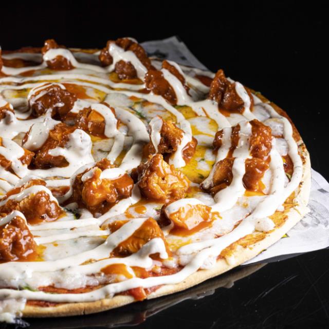 14" SALSA DE TOMATE SPICY, 200G DE QUESO MOZZARELLA, QUESO CHEDDAR, BONELESS BAÑADOS EN BUFFALO CLASIC, ESPINACA Y ADEREZO RANCH