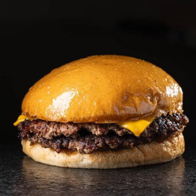 PAN BRIOCHE, DOBLE PATTY DE 80G. PRIME MEAT SMASH, DOBLE QUESO AMERICANO Y ADEREZO DE LA CASA