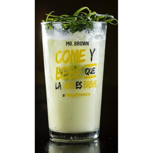 AGUA DE PEPINO, CREMA DE COCO, JUGO DE LIMÓN, JARABE Y JENGIBRE