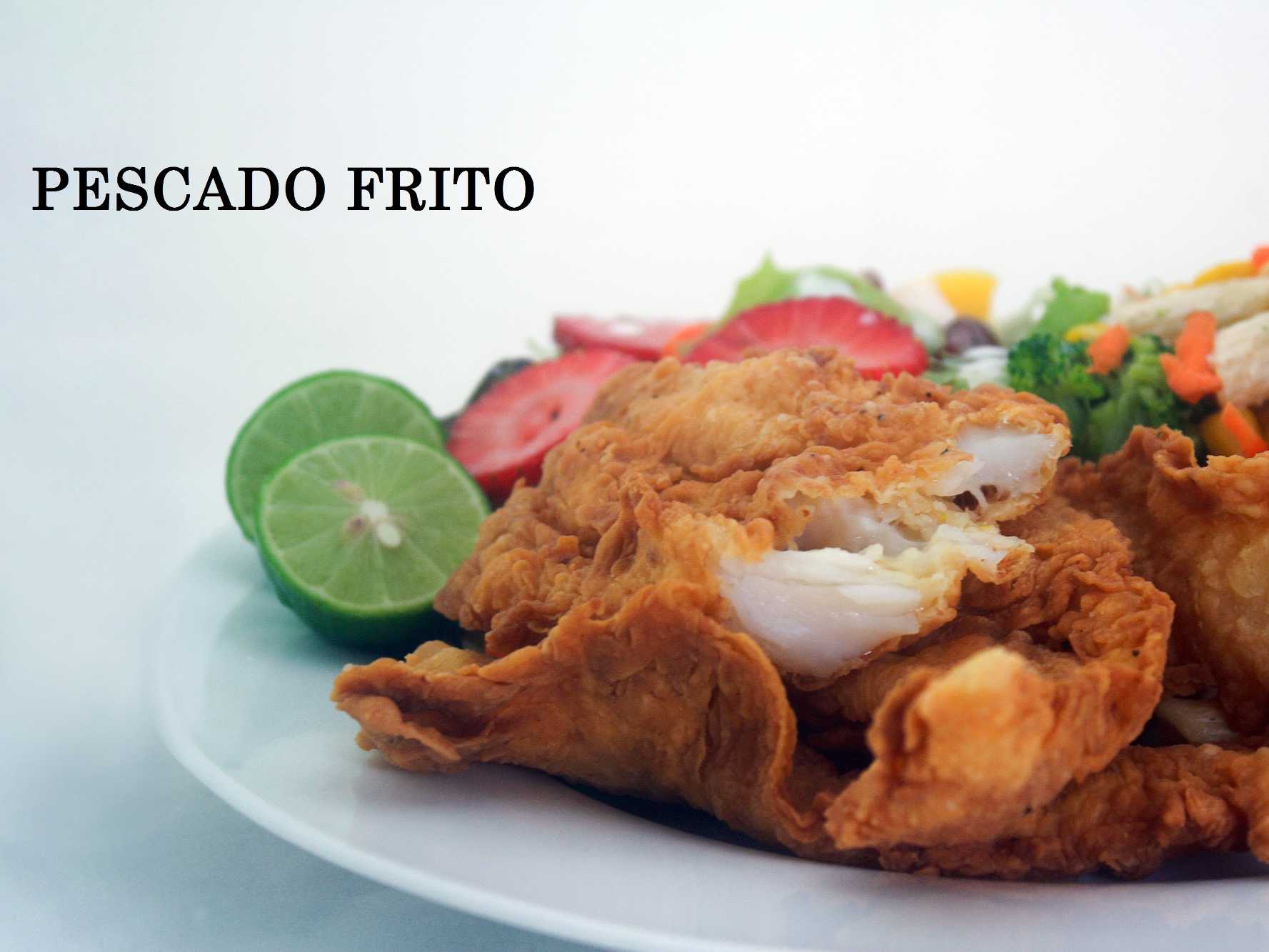 Filete de pescado sin espinas, cortado en tiras, incluye 2 acompañamientos.