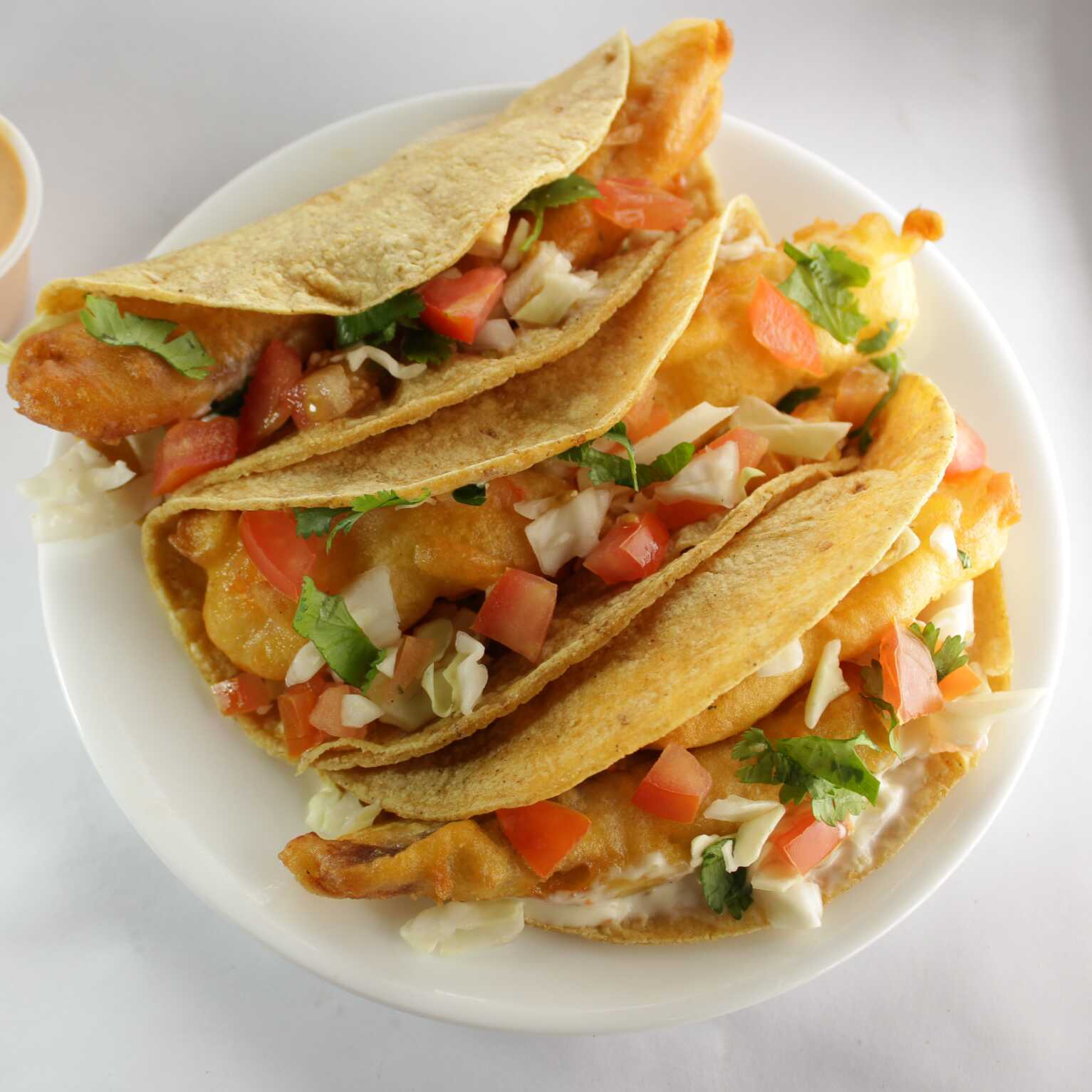 Tres tacos de Camaron capeados