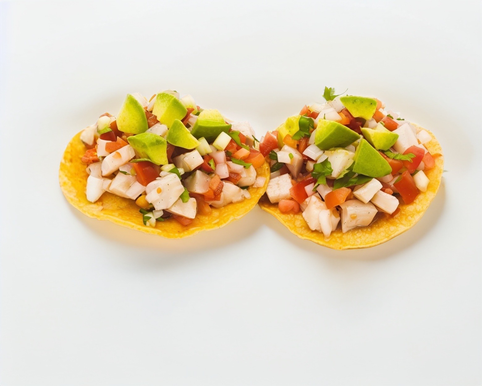 una tostada de camaron preparada con pico de gallo y vinagreta de la casa