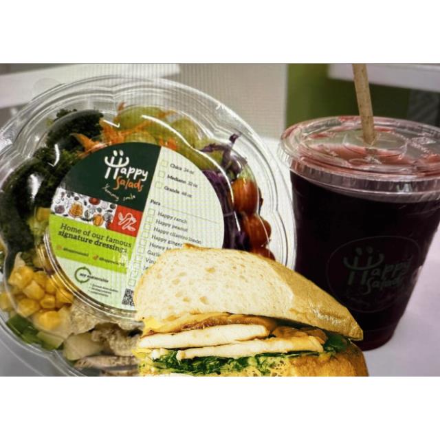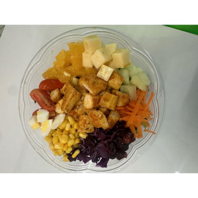 Arma tu ensalada con 2 proteinas, 4 complementos, 1 aderezo (se pueden pedir complementos, aderezos y proteinas extras con costo)