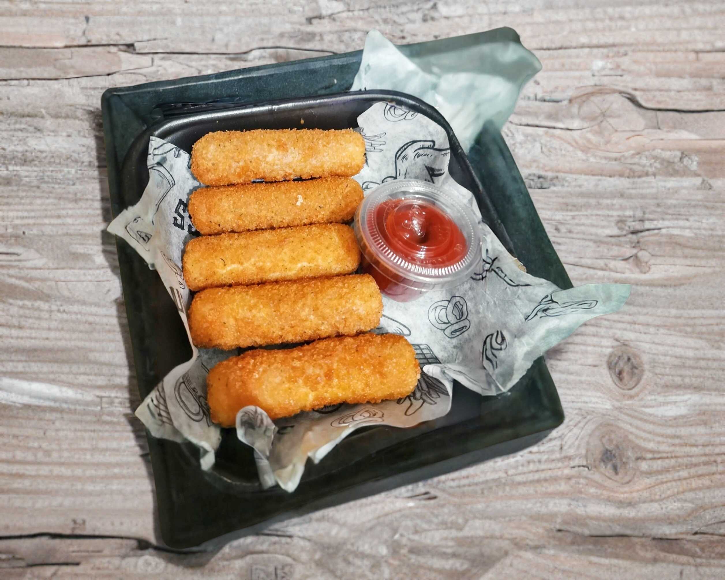 5 Deliciosos dedos de queso acompañados de salsa boloñesa.