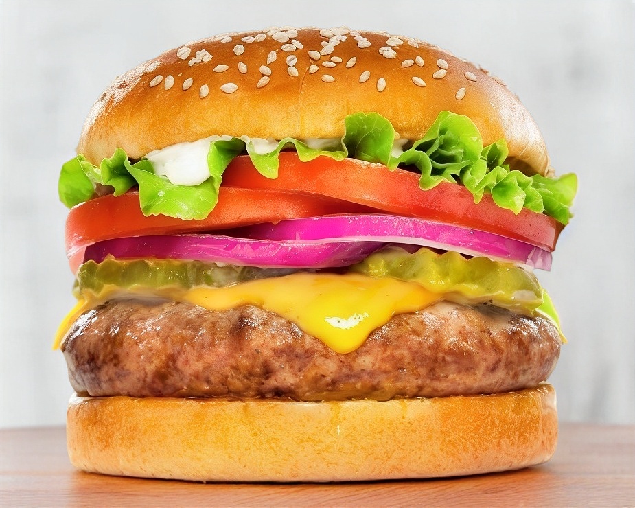 Jugosa carne de res ,queso cheddar,tomate,lechuga y cebolla
