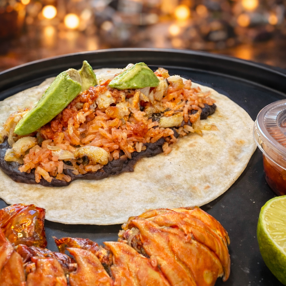 De Harina,cola de langosta, frijoles y arroz de la casa, no necesitas más.