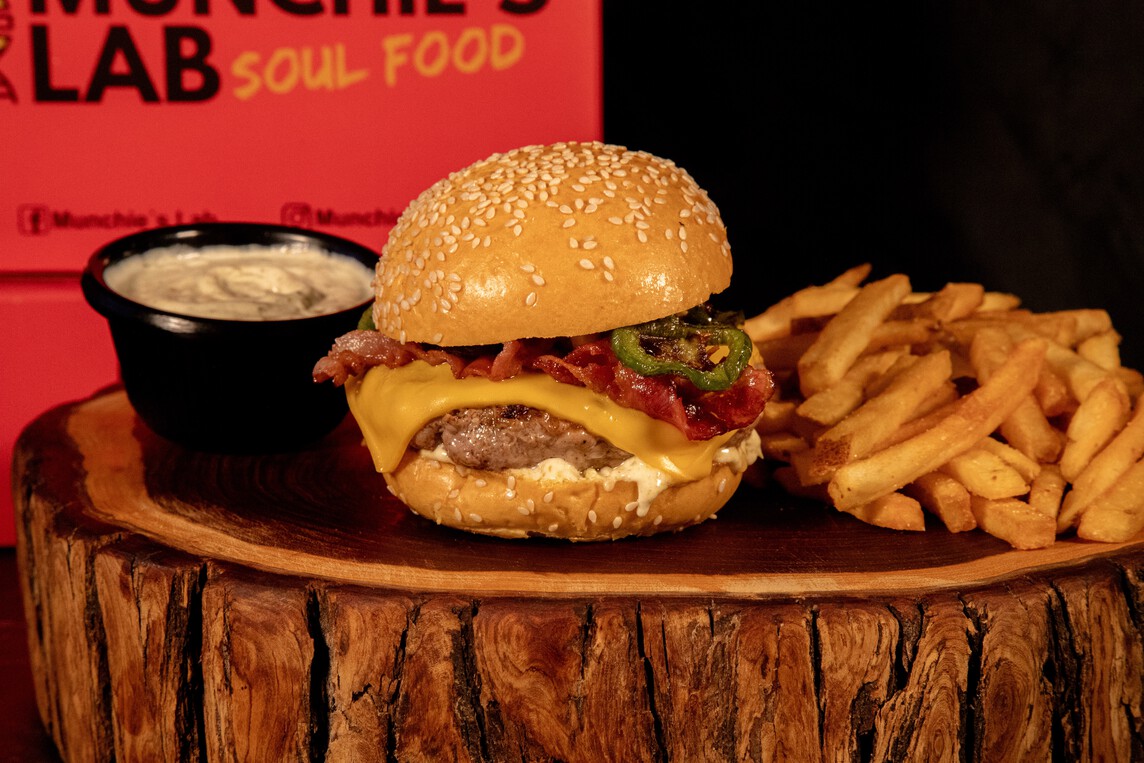 Pan brioche, carne prime, aderezo de jalapeño, queso, tocino y tiras de jalapeño toreadas.