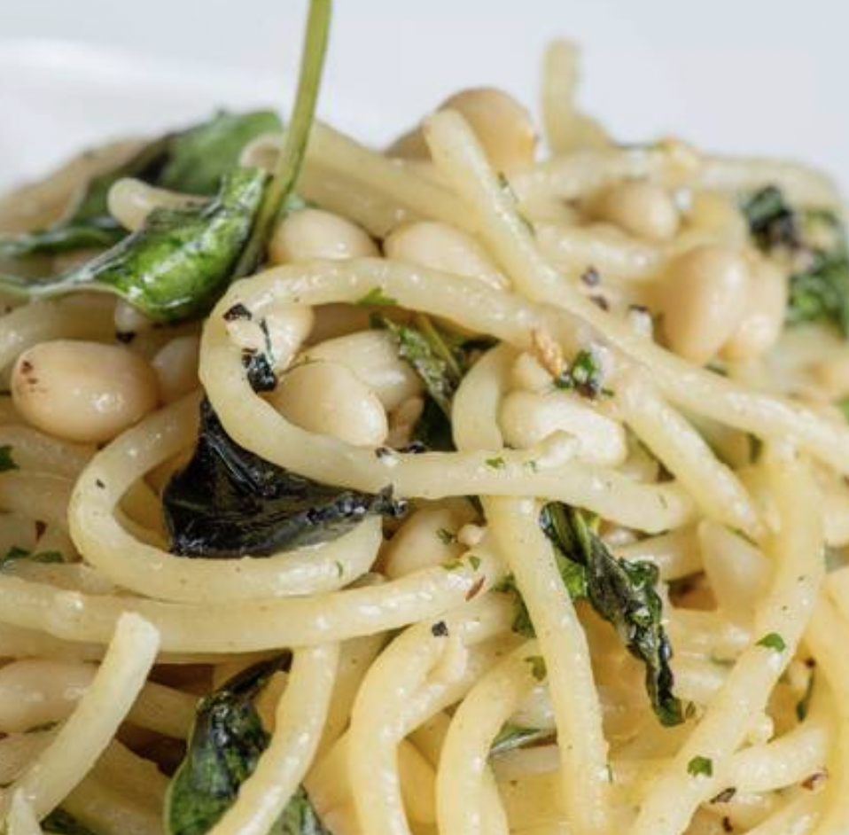 (rica mezcla de piñon albahaca y parmesano)