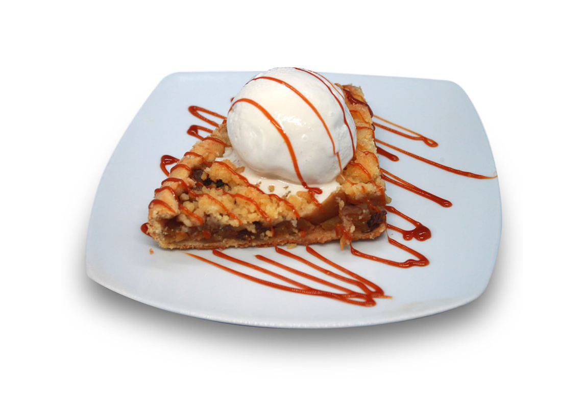 Delicioso Pay de Manzana hecho con la receta de la casa y acompañado con nieve de vainilla.