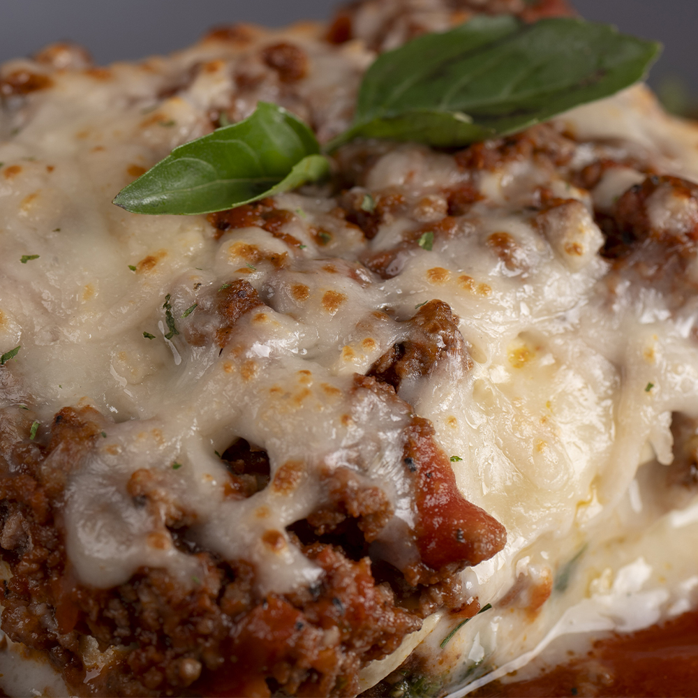 (carne boloñesa marinada en vino tinto, servida en capas con espinaca y queso mozzarella sobre laminas de pasta y horneada ar