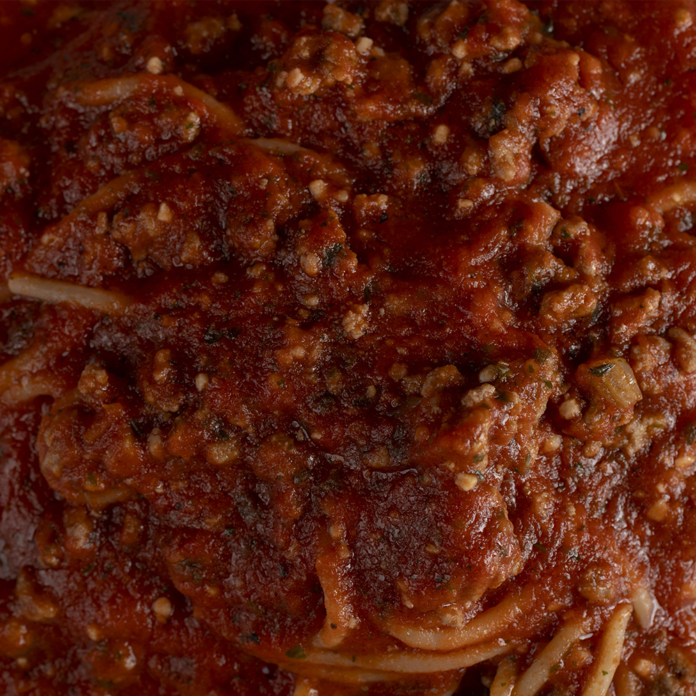 Spaghetti en rica salsa de tomate con carne molida.
