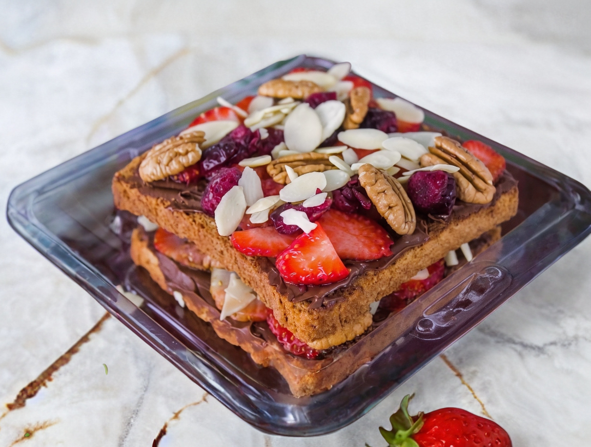 3 wafles con miel y mermelada