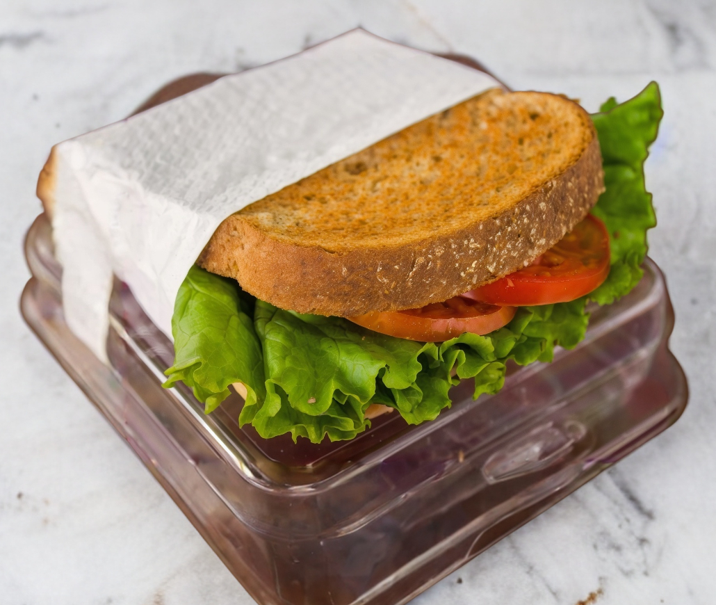 Sándwich de jamón de pavo con queso gouda, tomate y lechuga. (Porción personal)