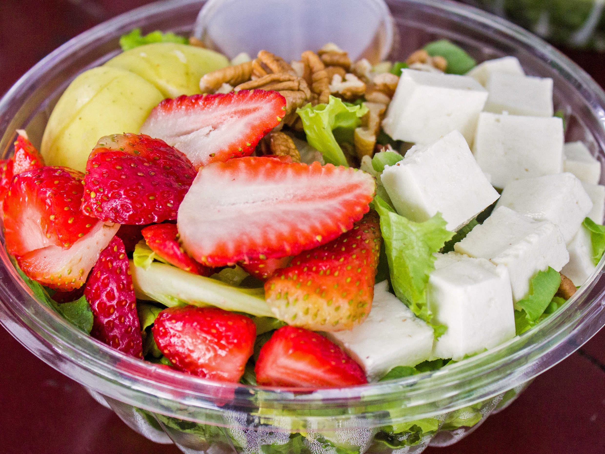 Lechuga, fresa, manzana, queso panela y nuez.