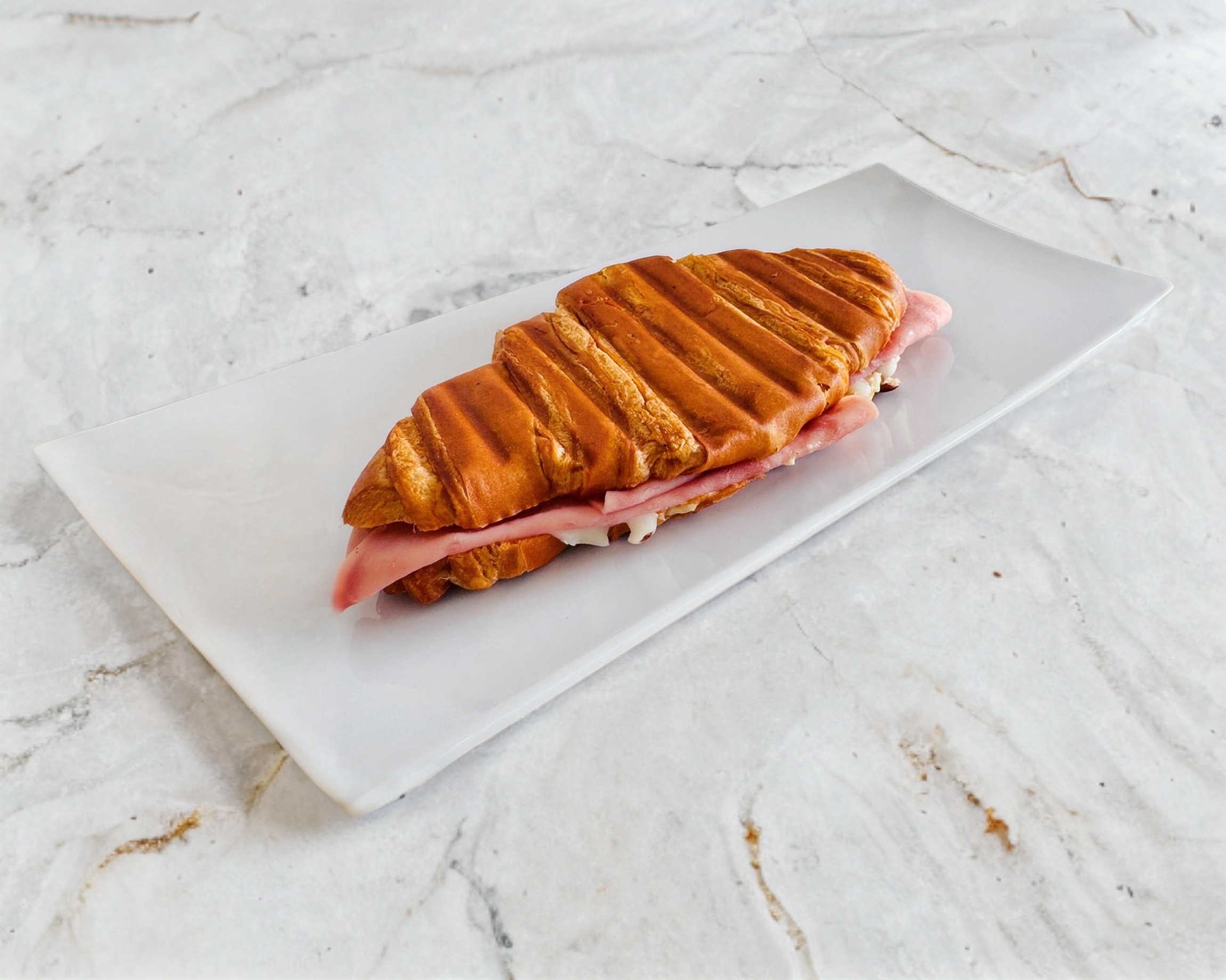 Croissant tostado con jamón de pavo y queso mozarella