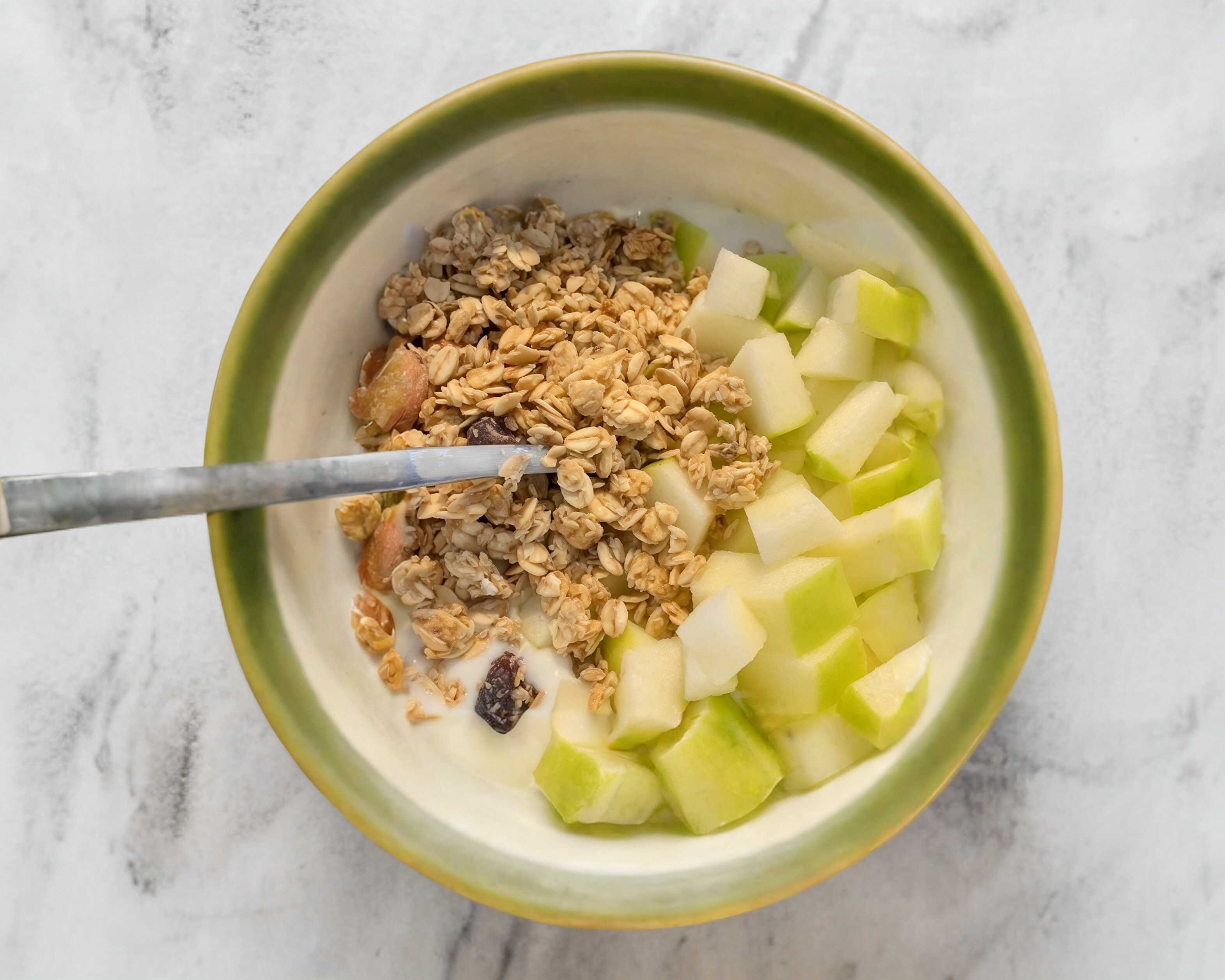 Coctel a base de yogurt griego con manzana verde y granola artesanal