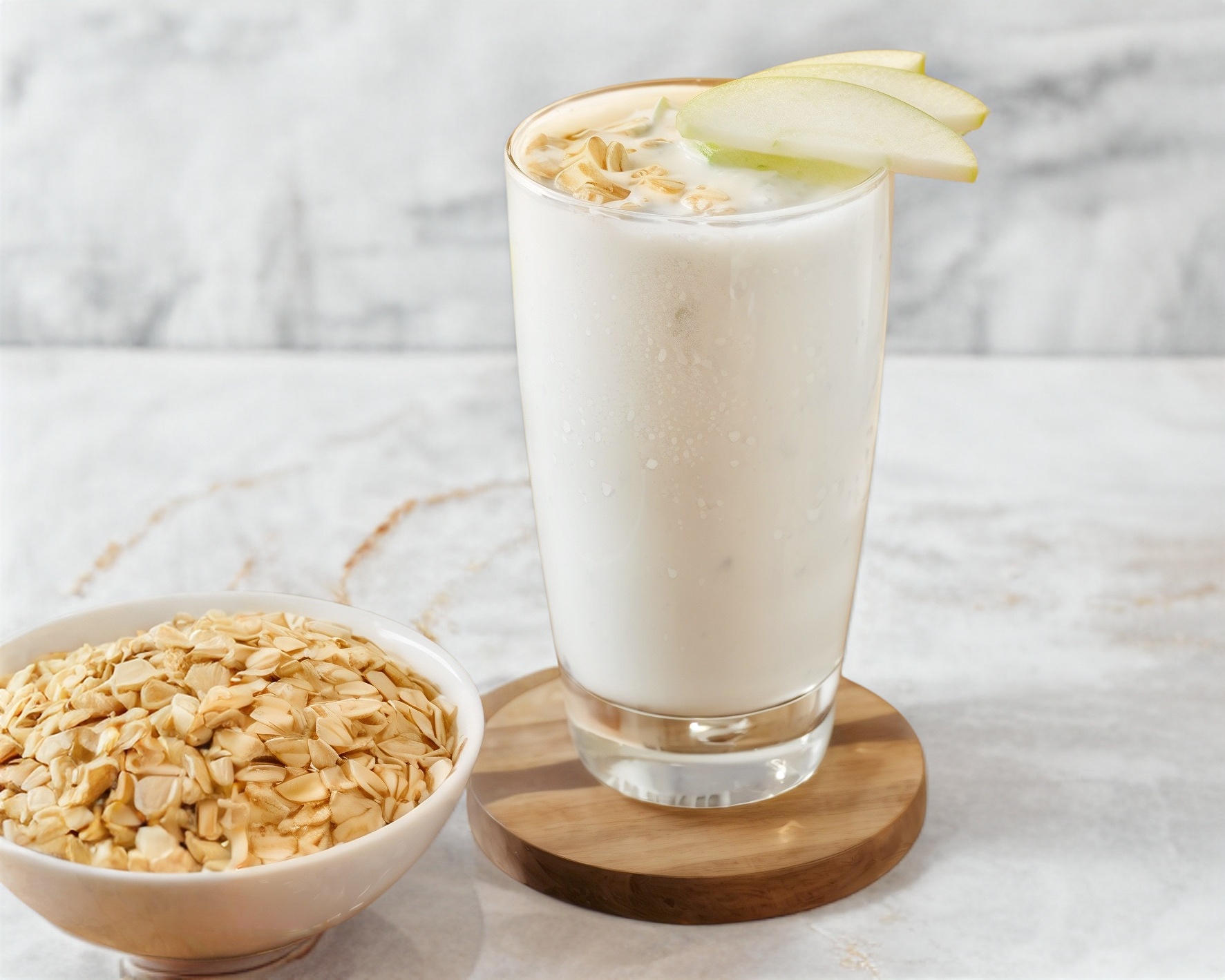 Licuado de manzana con avena y alemandra, endulzado con stevia. 500 ml (Leche deslactosada light)
