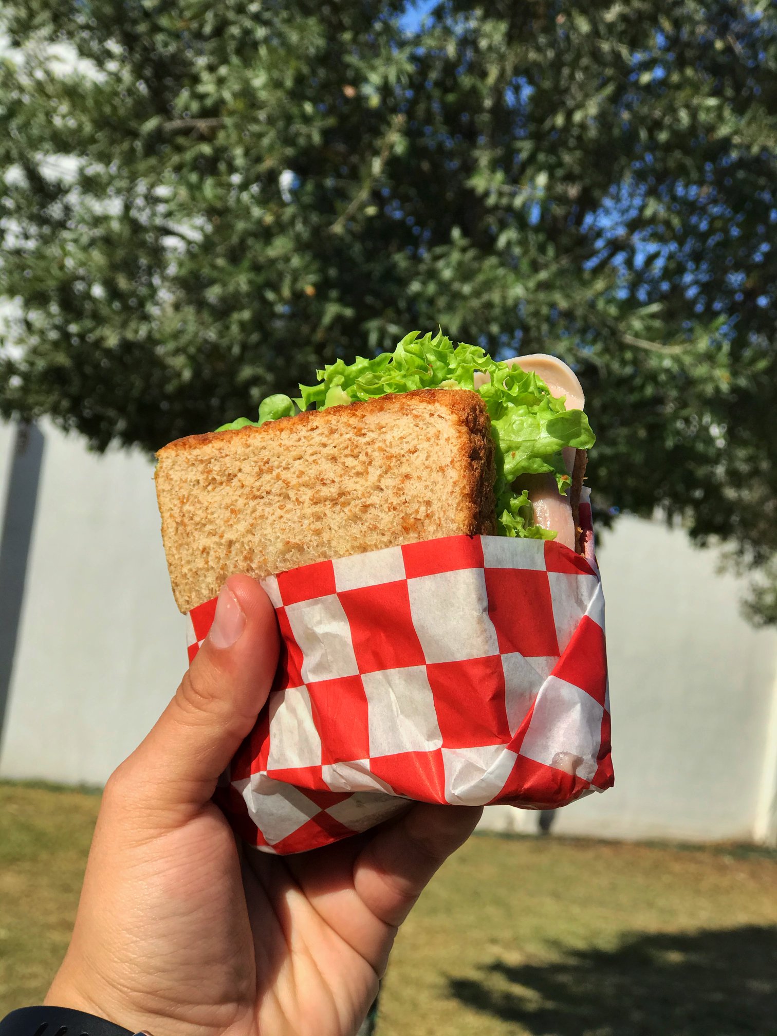 Pan de barra integral + Mayonesa + Pollo + Queso manchego + Lechuga + Tomate + Aguacate + Salsa del día
