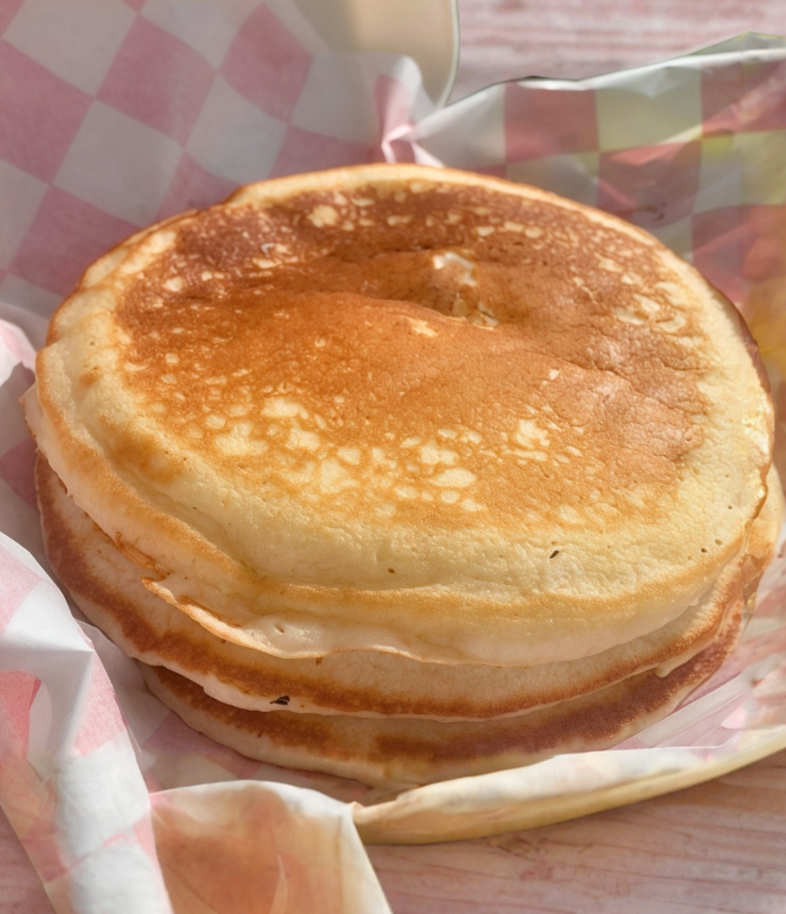 3 piezas grandes de hotcakes + Mantequilla + Mermelada + Maple