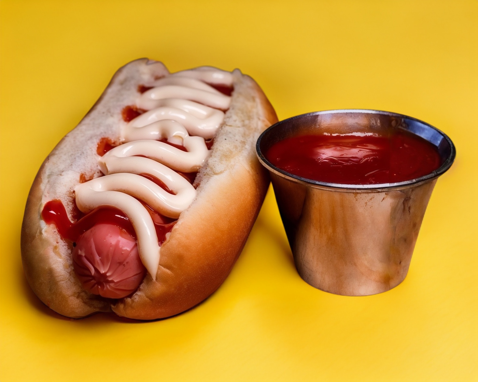 Pan, salchicha de pavo, mayonesa y catsup