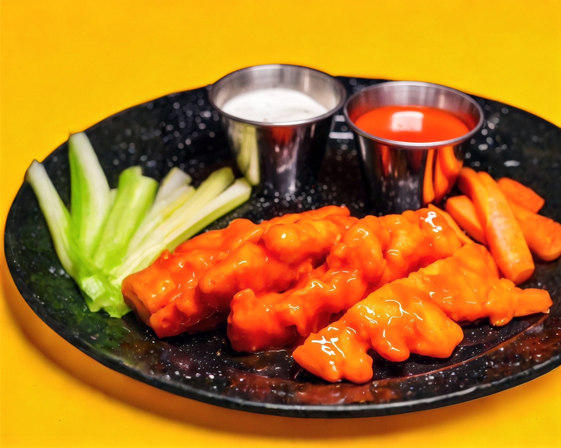 250grs de tiras de pollo empanizado bañados en tu salsa favorita