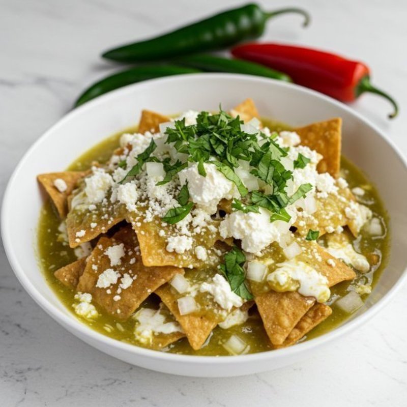 Arma tus Chilaquiles verdes, proteina y toppings a elección.