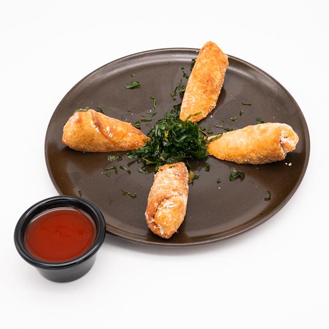 4 piezas de ravioles rellenos con un mix de pollo, cangrejo y camarón.