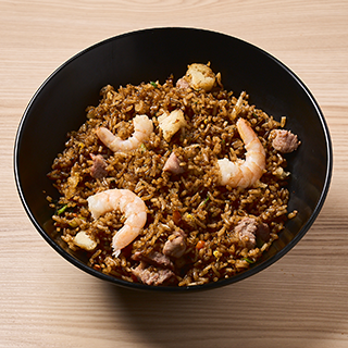 Arroz frito oriental verduras, pollo, camarón y carne. Tamaño personal (250 gramos)