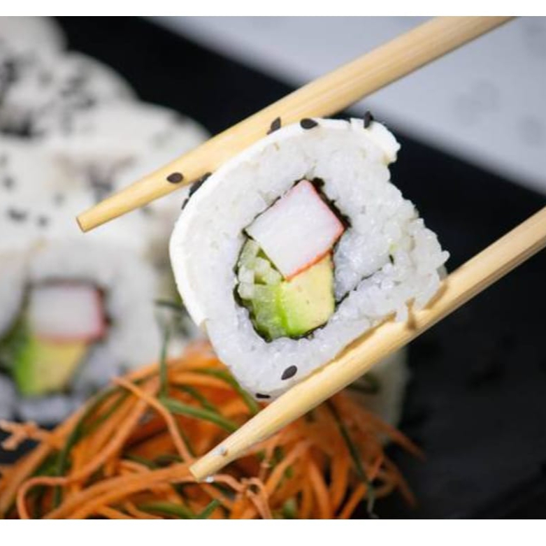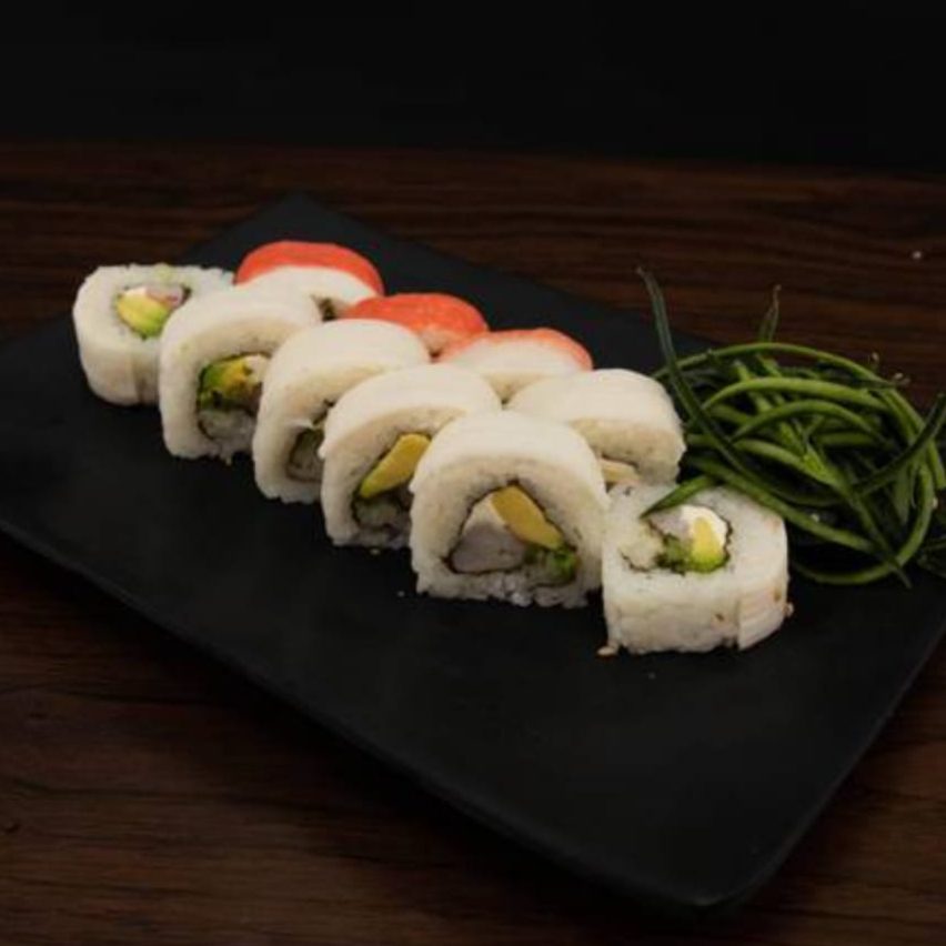 ROLLO CON SURIMI AGUACATE QUESO CREMA POR FUERA