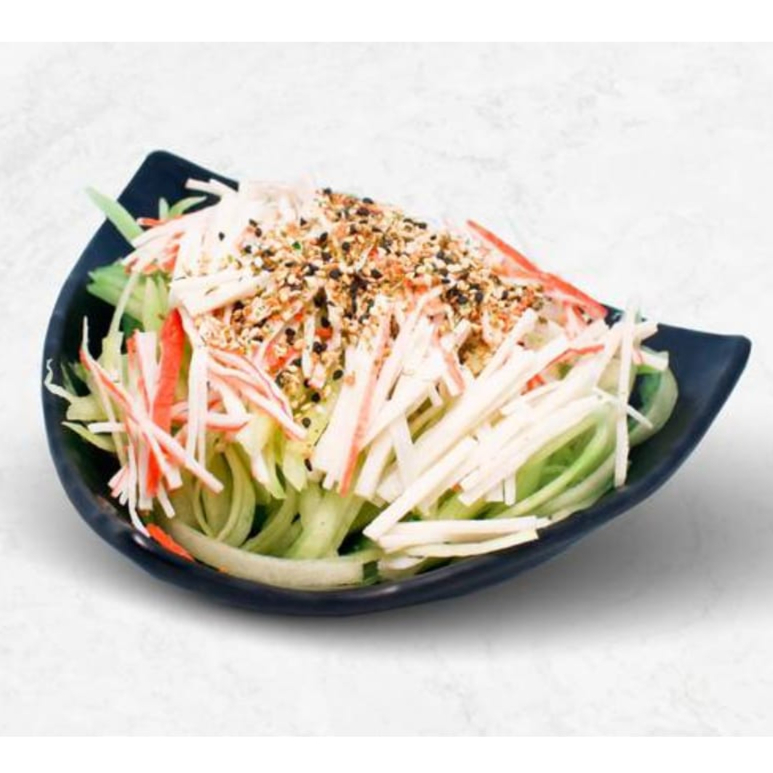 ensalada de pepino con surimi vinagre de arroz y condimento furikake