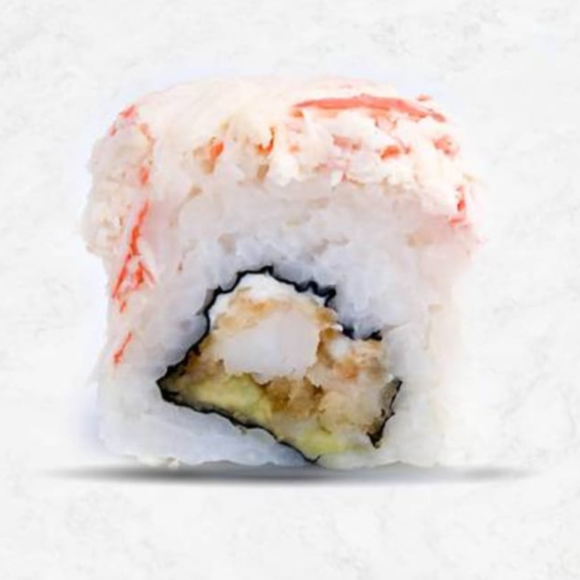 camaron queso crema aguacate y pepino por dentro con surimi por fuera