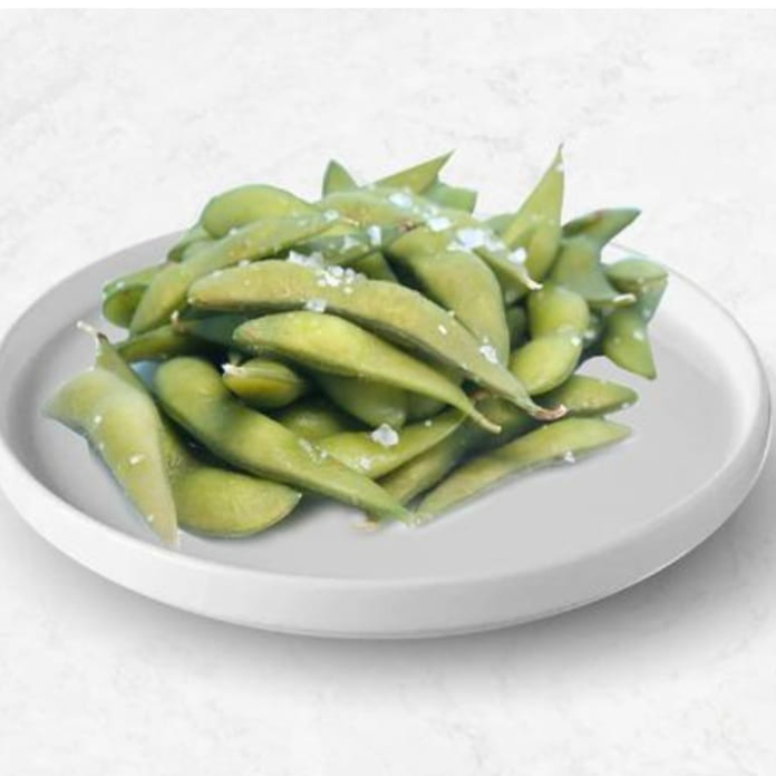 vaina de frijol de soya al vapor con sal de mar o preparados con togarashi
