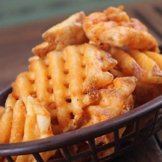 Las tradicionales papas fritas bañadas con salsa buffalo.