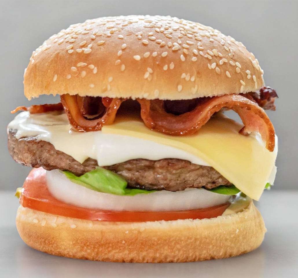 Carne de res, lechuga, tomate y queso. Incluye papas fritas.