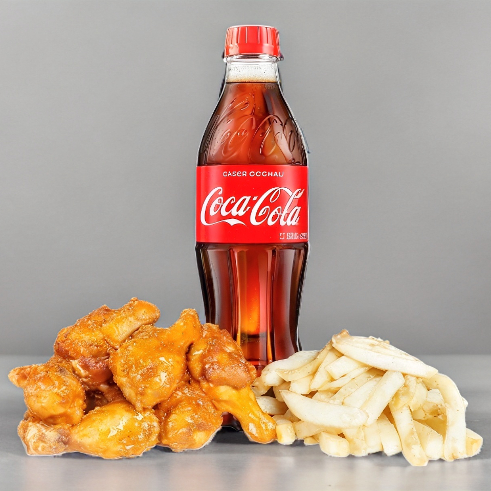 Deliciosa pechuga de pollo empanizada crujiente y picosita, cortada en tiras sobre una cama de papas a la francesa, acompañadas de varitas de apio con zanahoria, aderezo y salsa a elegir más refresco Coca Cola 355 ml.