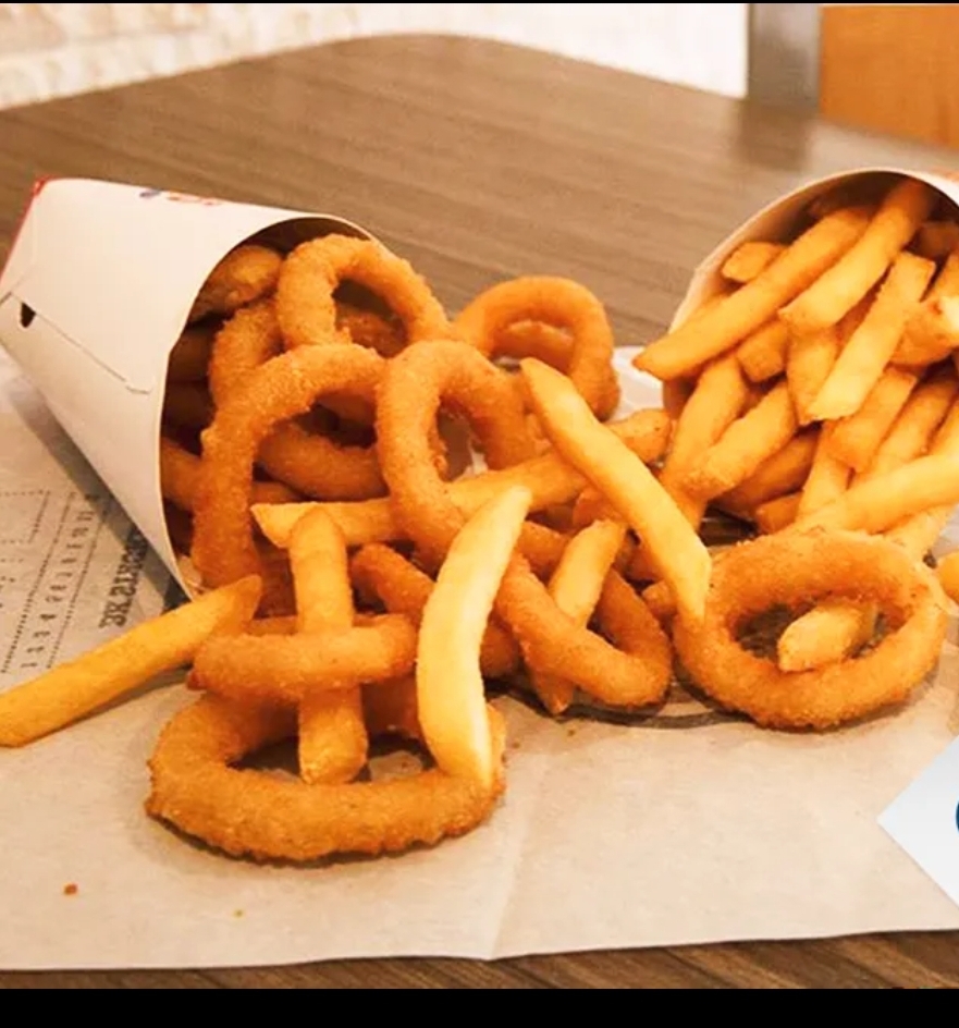 10 deliciosos oros de cebolla empanisados 🌰😋acompañados de papas fritas con ranch