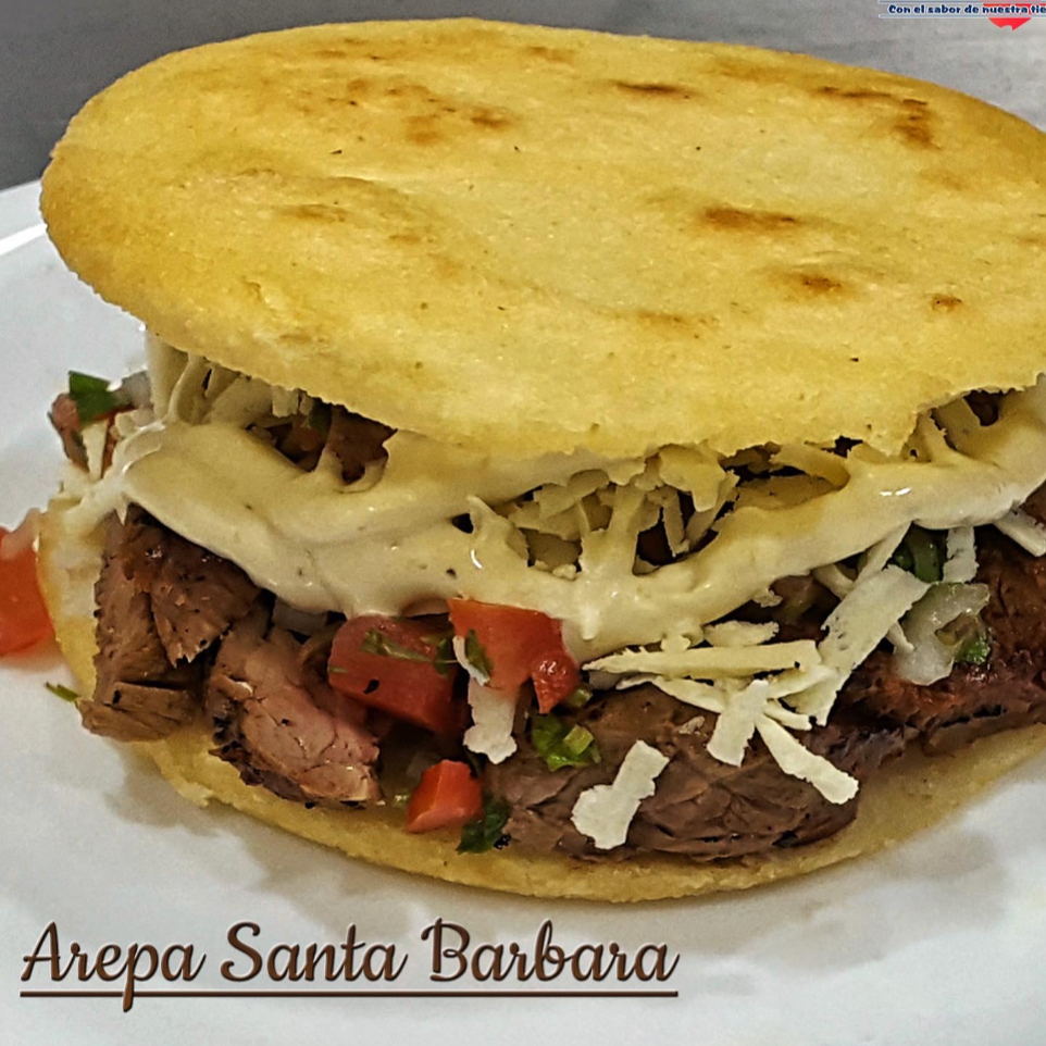Arepa de harina de maiz rellana con una especilidad que puede ser: mechada, pernil, pollo, chicharron, pepeada, pabellon.
