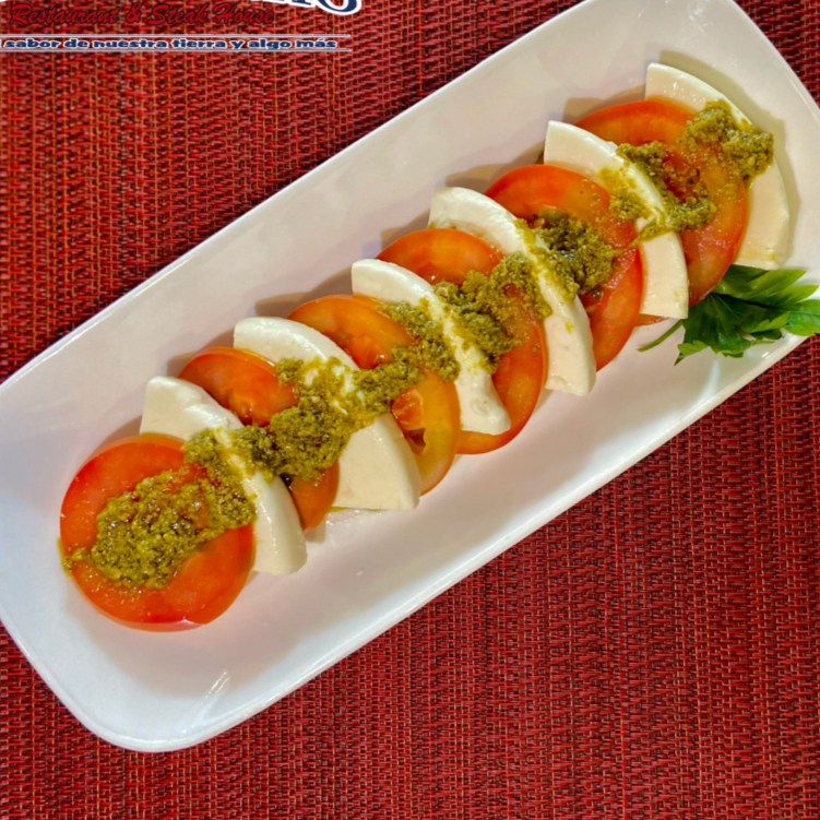 Ensalada Capresse preparada con queso de mano y el pesto de la casa