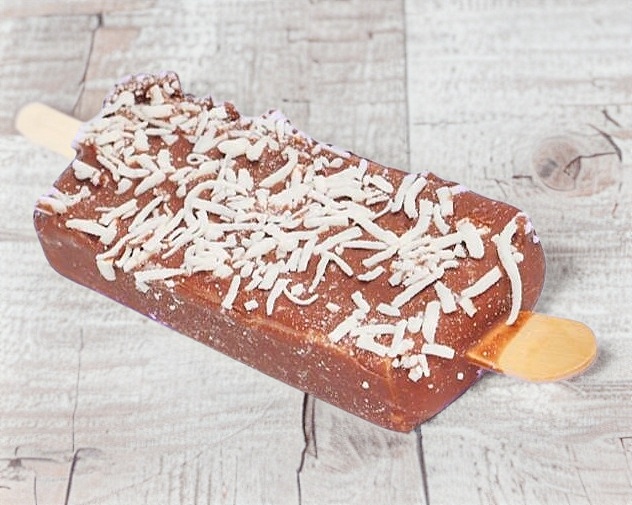 Paleta crema 140g sabor vainilla cubierta con chocolate y nuez.